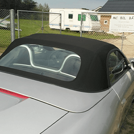 Vindstop (windstop/windbreaker/vindskærm/læskærm), forlænger cabriolet sæsonen! Vindskærmen er lavet af en let metal ramme som er beklædt med kunstlæder og flotte syninger - MBB noget af den højeste kvalitet i Europa! Andre biludstyrsforhandlere i Danmark sælger dem ALT for dyrt. De billige vindstopnet, ligner ofte alm. myggenet=meget fintmasket...